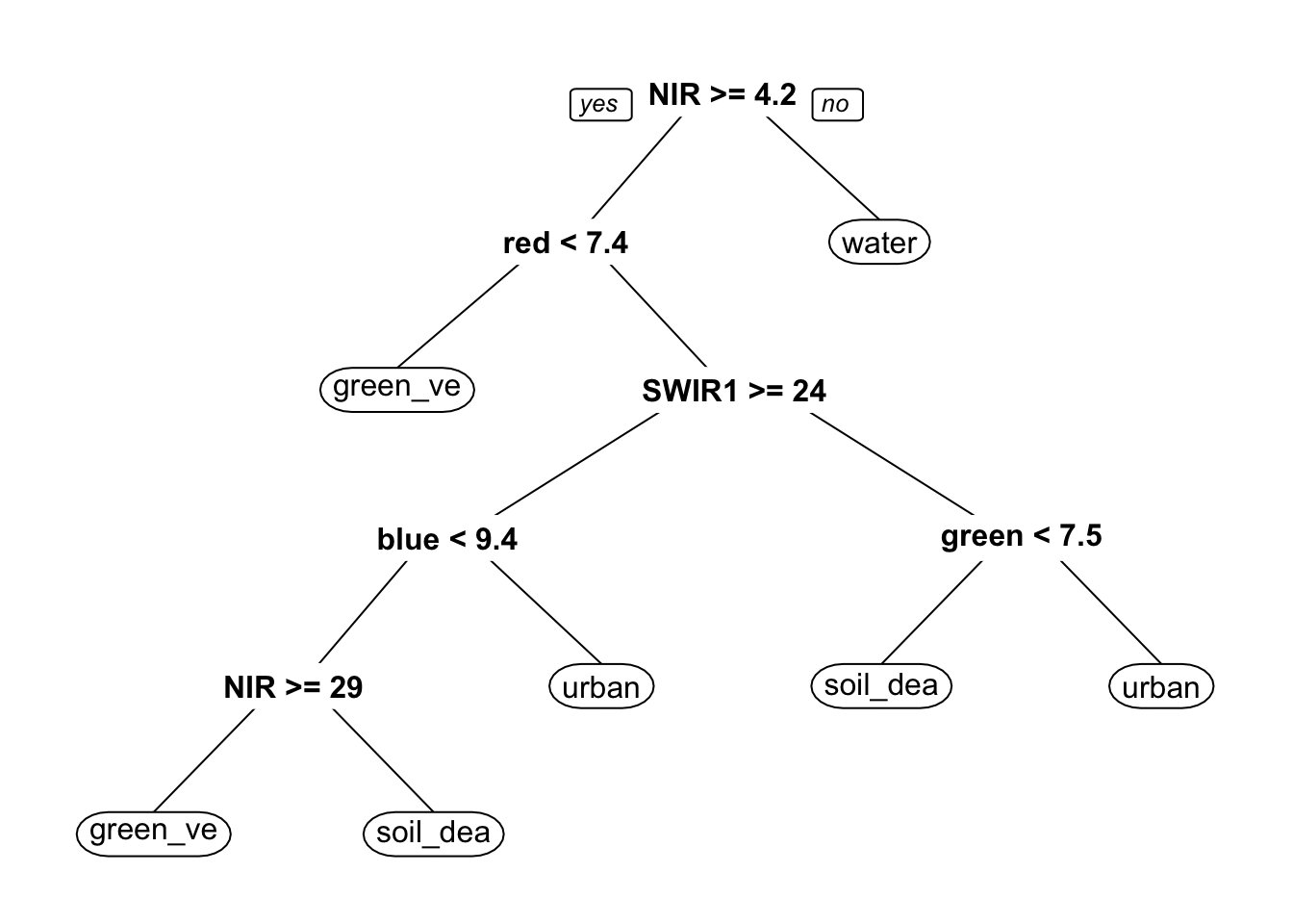 na.action = na.omit)To understand how our decision tree will classify pixels, we can plot the results!